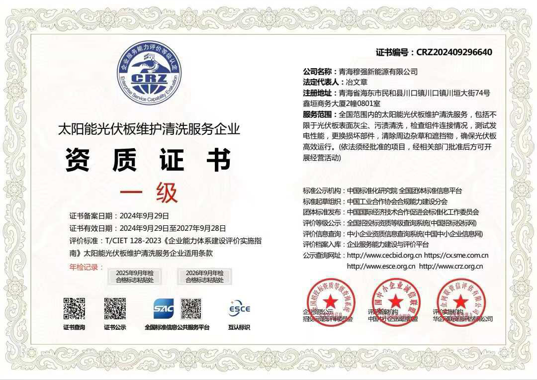 您的位置::首页荣誉资质太阳能光伏板维护清洗服务企业资质证书**